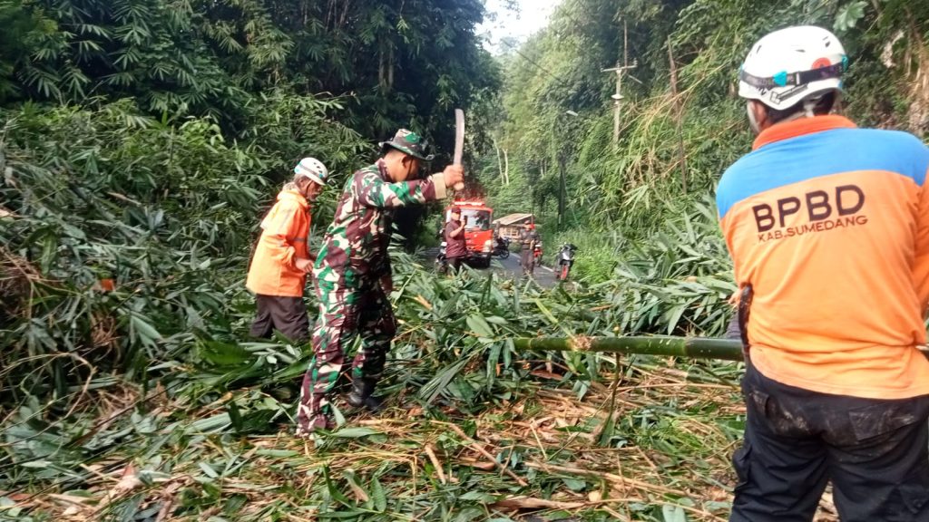 Penanganan langsung dikoordinasikan oleh Sersan Ilham anggota Koramil 1004/Tanjungsari Kodim 0610/Sumedang, yang memimpin tim gabungan dari TNI, Polri, BPBD, serta relawan untuk membersihkan material longsor dan memastikan jalur kembali aman. Upaya pembersihan berlangsung dengan penuh koordinasi dan profesionalisme.
