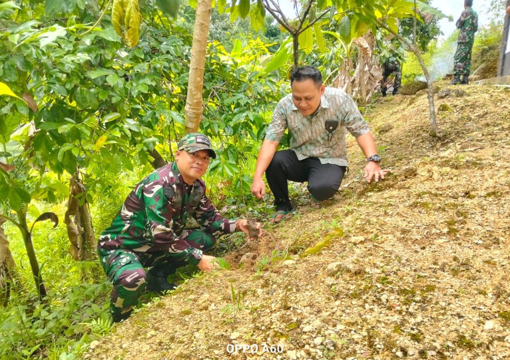 Tasikmalaya, KabarSakti– TNI AD melalui Kodim 0612/Tasikmalaya, Koramil 1218/Cikatomas, Bersama BPP Pancatengah dan Warga melaksanakan program penanaman 150 bibit pohon sukun secara serentak di Komplek Buper, Kampung Ciwatin RT 16/6, Desa Cibongas, Kecamatan Pancatengah, Kabupaten Tasikmalaya, Jawa Barat.