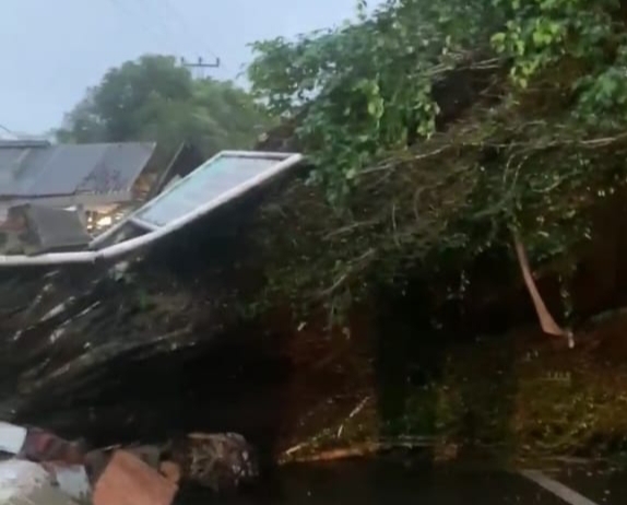 Kab.Tasikmalaya,Kabarsakti.com—Beberapa waktu ini hujan mengguyur Tasikmalaya,sekira jam 18;30 WIB di bunderan jalan Cikalong tepatnya depan puskesmas telah tumbang pohon beringin besar diduga umurnya sudah ratusan tahun. 22/52025.