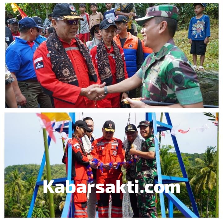 Garut, Komandan Korem 062/Tn Kolonel Inf Nurul Yakin, M.A., menghadiri kegiatan peresmian jembatan gantung sungai Cikaso, bertempat di Kp. Pasantren, Ds. Sirnabakti Kec. Pameungpeuk Kab. Garut, pada Sabtu 14 Juni 2025.