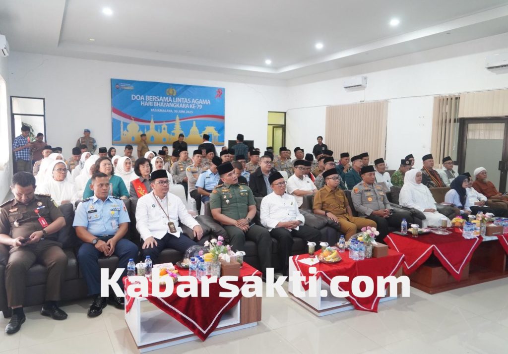Tasikmalaya, KabarSakti.com – Dalam rangka menyambut Hari Bhayangkara ke-79, Polres Tasikmalaya Kota menggelar kegiatan Doa Bersama Lintas Agama yang berlangsung khidmat pada Senin, 30 Juni 2025 sore. Bertempat di Aula Endra Dharma Laksana, Polres Tasikmalaya Kota.
