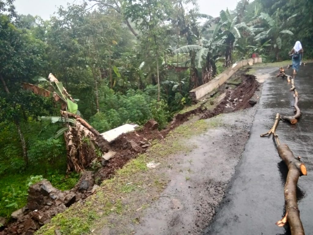 Kab.Tasikmalaya, Kabarsakti.com,-Akibat curah hujan yang tinggi, disamping kondisi tanah yg labil, Jalan Kampung Sanghiang Teureup Desa Pakemitan Kidul Kecamatan Ciawi Kabupaten Tasikmalaya, longsor sepanjang 30 meter dengan kedalaman sekitar 15 meter.