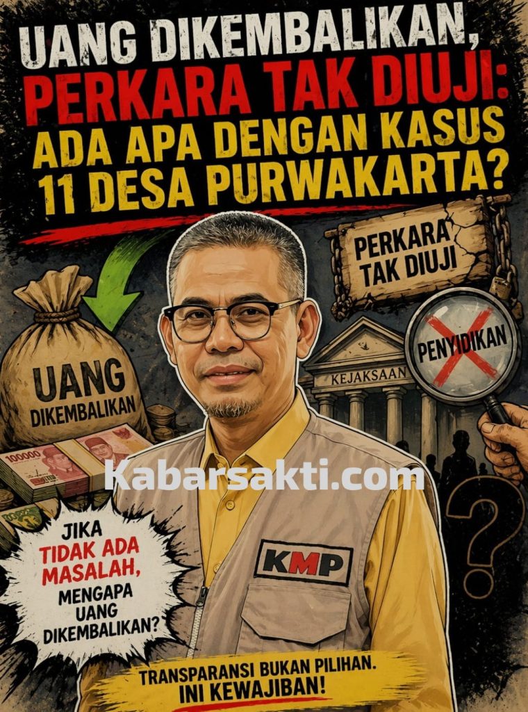 Purwakarta, KabarSakti.com – Komunitas Madani Purwakarta (KMP) kembali angkat bicara terkait penanganan dugaan tindak pidana korupsi Dana Desa di 11 desa yang dinilai tak memiliki kejelasan status hukum.