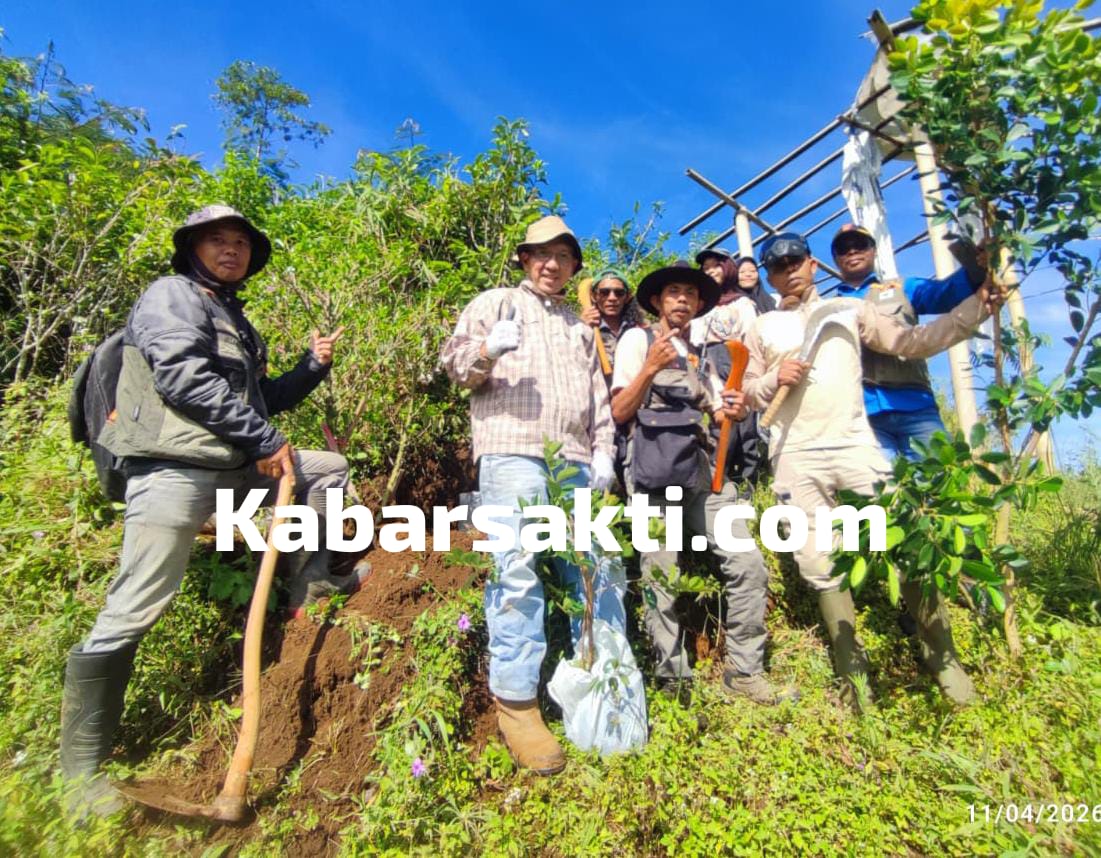 Garut, KabarSakti.com – Tingginya intensitas hujan belakangan ini membuat risiko tanah longsor dan luapan air sungai semakin mengintai berbagai wilayah. Menanggapi hal tersebut, Paguyuban Kolaborasi Hijau Garut kembali menggelar aksi nyata ke-66 di Blok Gunung Congkrang, Lahan HGU PTPN 1 Regional 2 Kebun Cisaruni, Kampung Ciarileu, Desa Mekarjaya, Kecamatan Cikajang, Sabtu 11 April 2026.